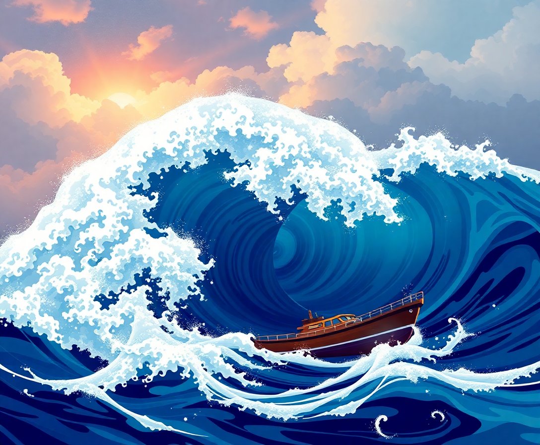 Ultimately, add final details to navigation elements and wave crests for authentic depth. Your completed masterpiece showcases the eternal struggle between human navigation and nature’s fury. Display your achievement with pride and admiration.