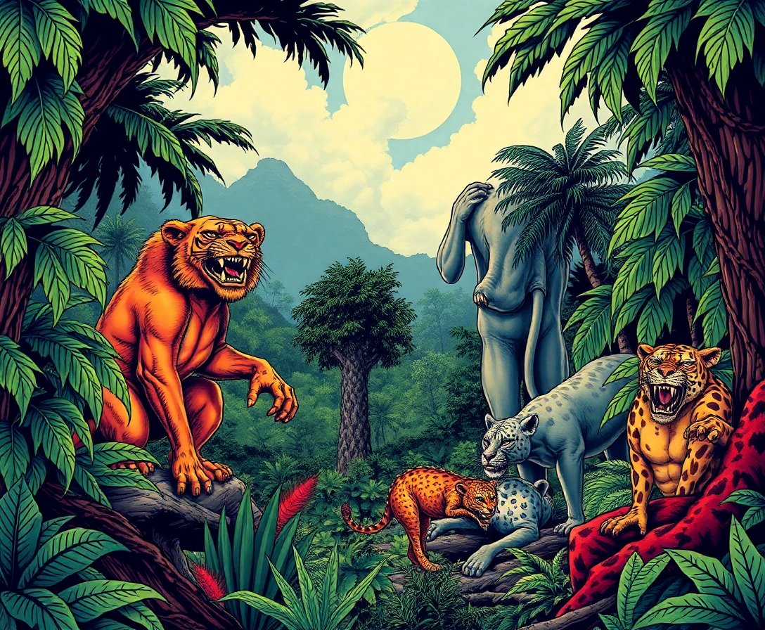 This kit captures authentic golden era comics styling with bold typography and realistic jungle elements. The nostalgic pulp fiction aesthetic creates a unique artistic statement piece.