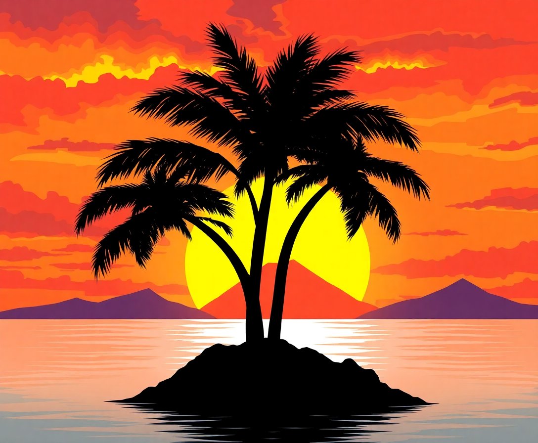 Realistic Volcanic Palm Silhouette Paint By Numbers