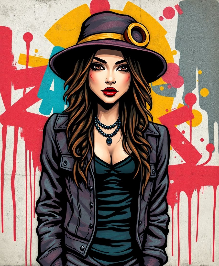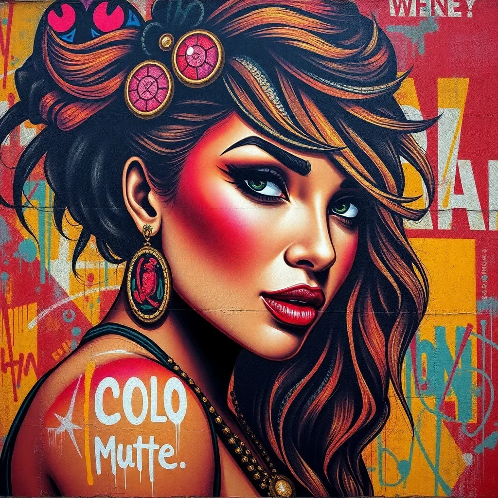 Ultimately, add final details to bring your diva portrait to life. The tropical accents and stencil-like effects create stunning visual impact. Your completed masterpiece showcases professional-quality urban artistry that commands attention.
