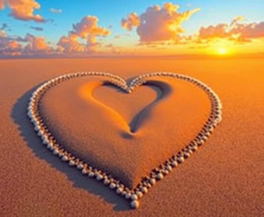 Ultimately, step back and admire your finished seascape creation. Furthermore, the completed heart emerges beautifully against realistic sand textures. Your artistic journey culminates in a stunning piece worthy of any wall.