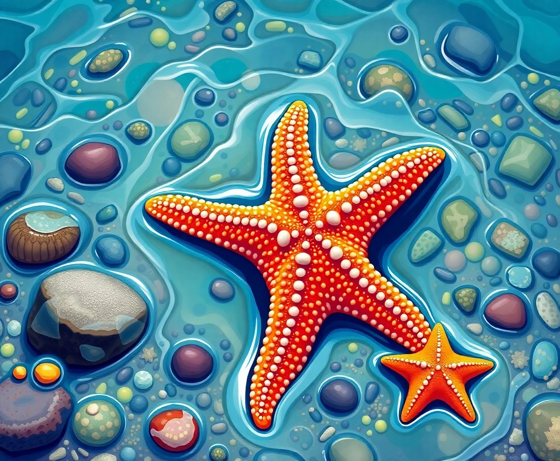 The lifelike sea star design showcases incredible attention to wet shore details. Moreover, Tidal Pool Ecosystems themes connect you with nature’s fascinating underwater worlds through art.