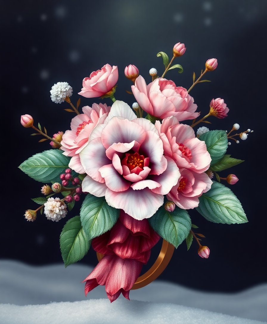Realistic Winter Botanical Ring Paint By Numbers