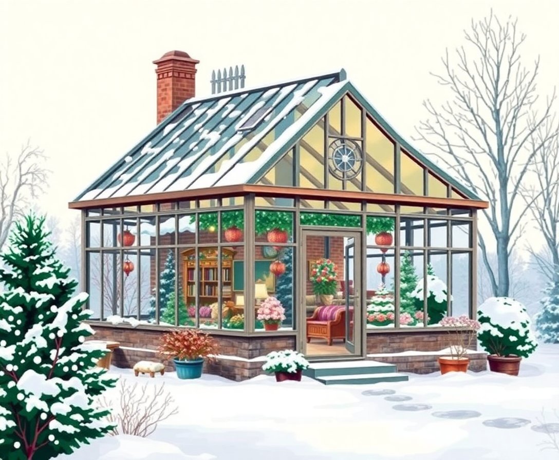 Experience the joy of creating your own winter botanical sanctuary today. Therefore, let this peaceful glasshouse scene bring tranquility to your artistic journey.