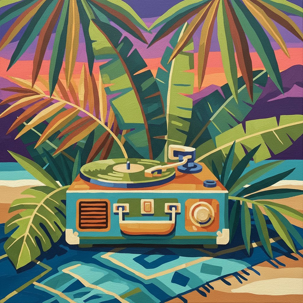 Ultimately, step back and admire your completed vintage-inspired creation. Add final details and touches as desired. Your tropical music-themed artwork now awaits display in your chosen space.