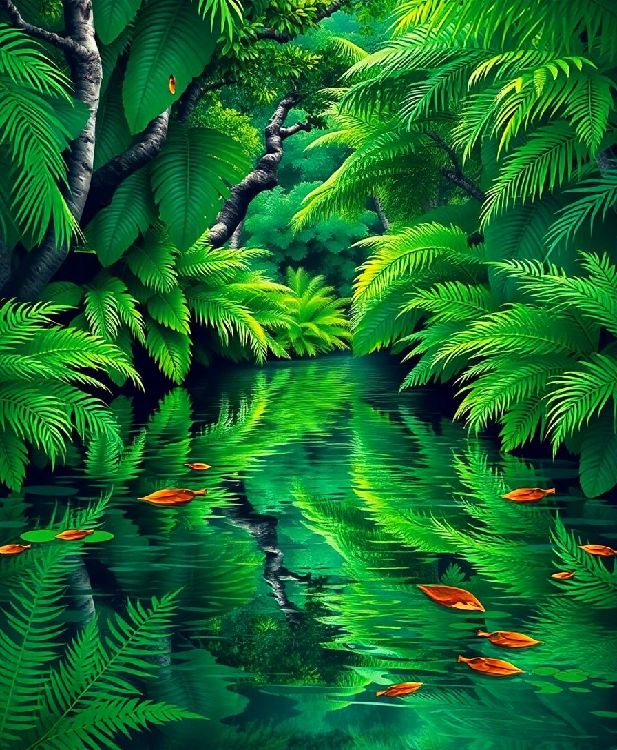 The high-quality linen canvas provides ample space for detailed jungle water reflections. Perfect size for displaying in living rooms, bedrooms, or office spaces.