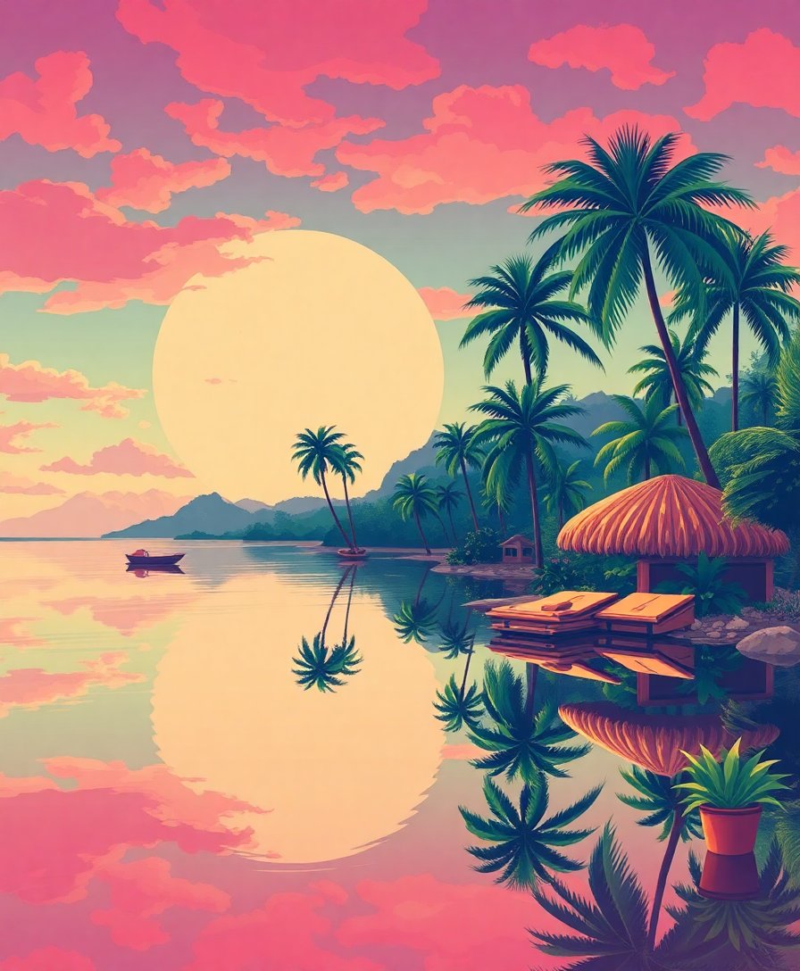 Reflecting Retro SciFi Tropics Paint By Numbers