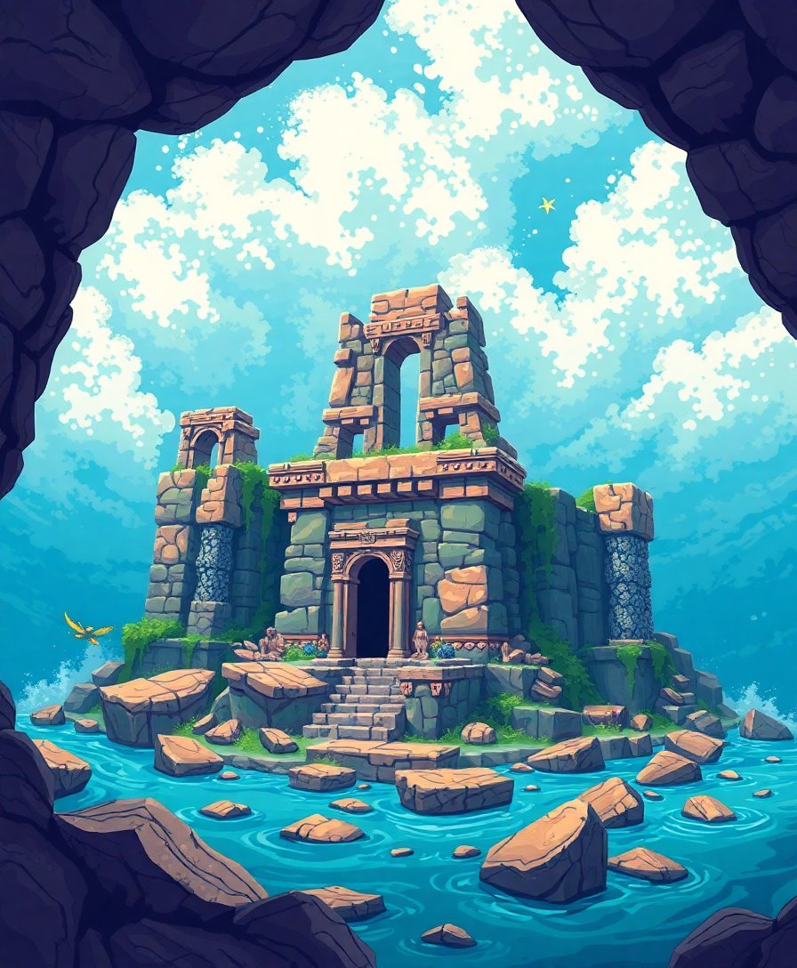 Ultimately, step back and admire your completed masterpiece. The ancient columns and mysterious artifacts now emerge from oceanic depths. Your patience and dedication have brought this lost civilization back to vivid life.