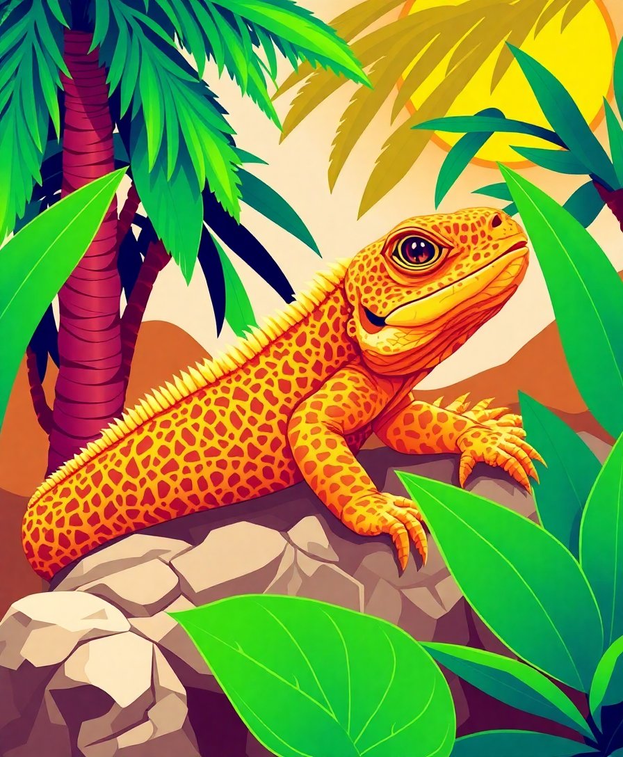Transform your creative space with this stunning Reptile In Tropical Sun Paint By Numbers masterpiece. This captivating design features a magnificent lizard basking beneath warm sunbaked rays. Moreover, the intricate tropical details create an immersive artistic experience.