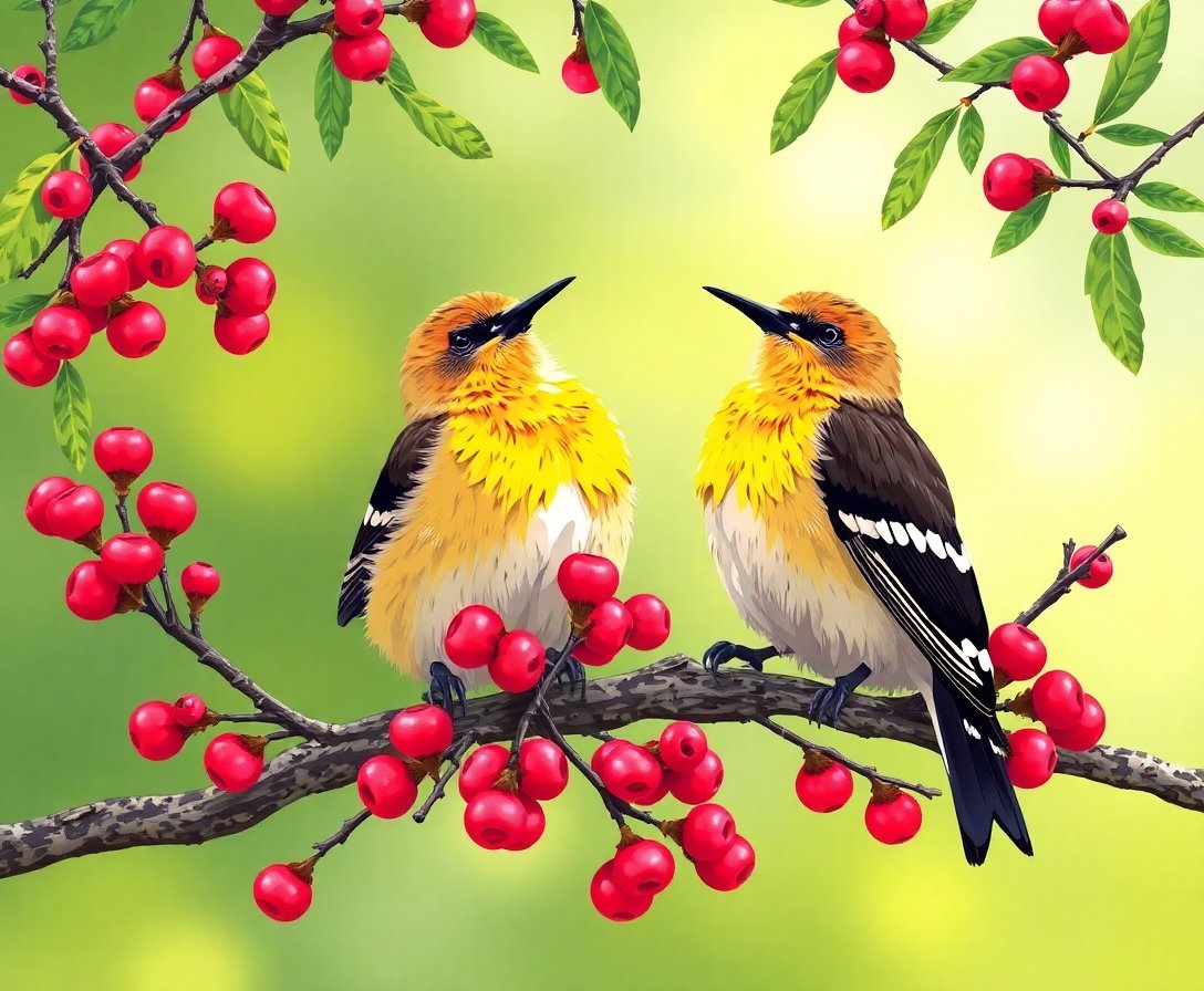 Complete Resting Coastal Cedar Waxwings Paint By Numbers Kit