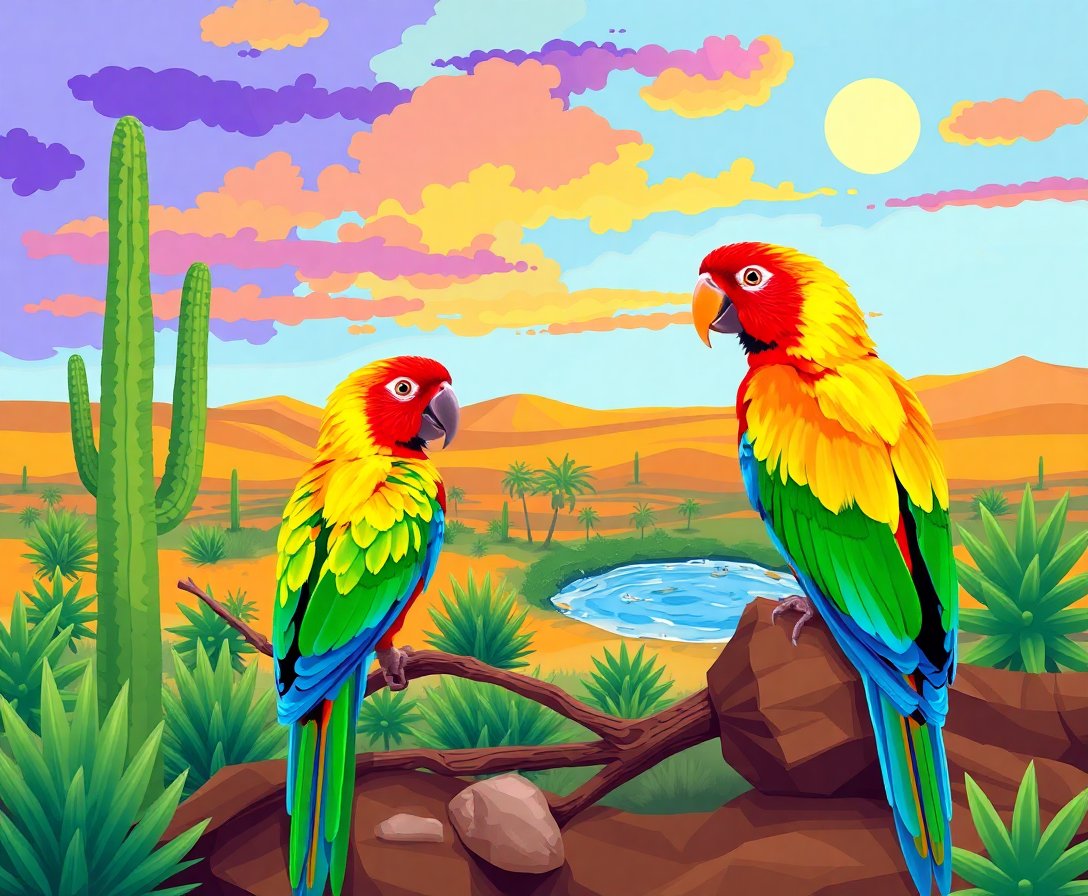 Ultimately, step back to admire your completed desert oasis masterpiece. The vibrant parrots and serene pool create a captivating focal point. Your artistic achievement deserves prominent display where others can appreciate this avian artistry.