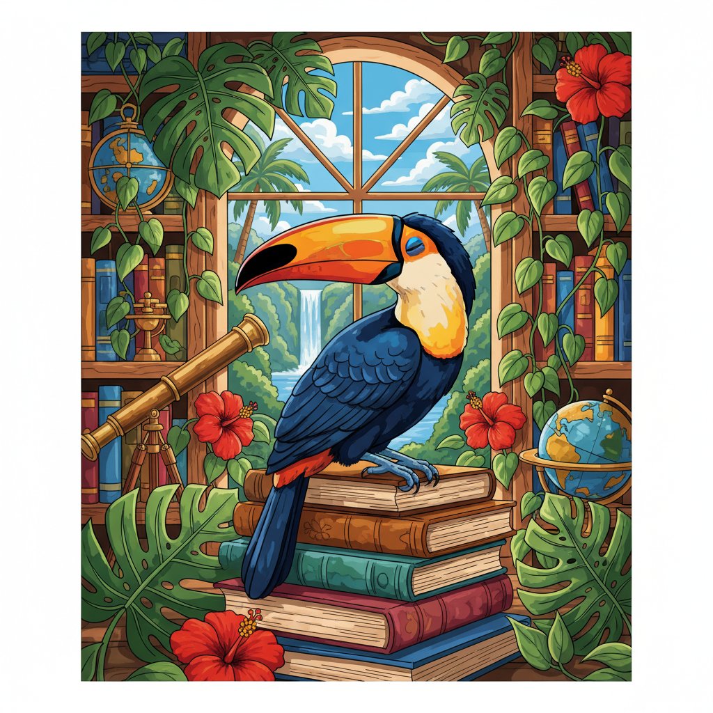 Transform your space into a serene reading haven with this exquisite Resting Tropical Library Bird Paint By Numbers masterpiece. This captivating design features a magnificent parrot nestled among leather-bound books beside a crackling fireplace. Each brushstroke brings warmth and tranquility to your creative journey.