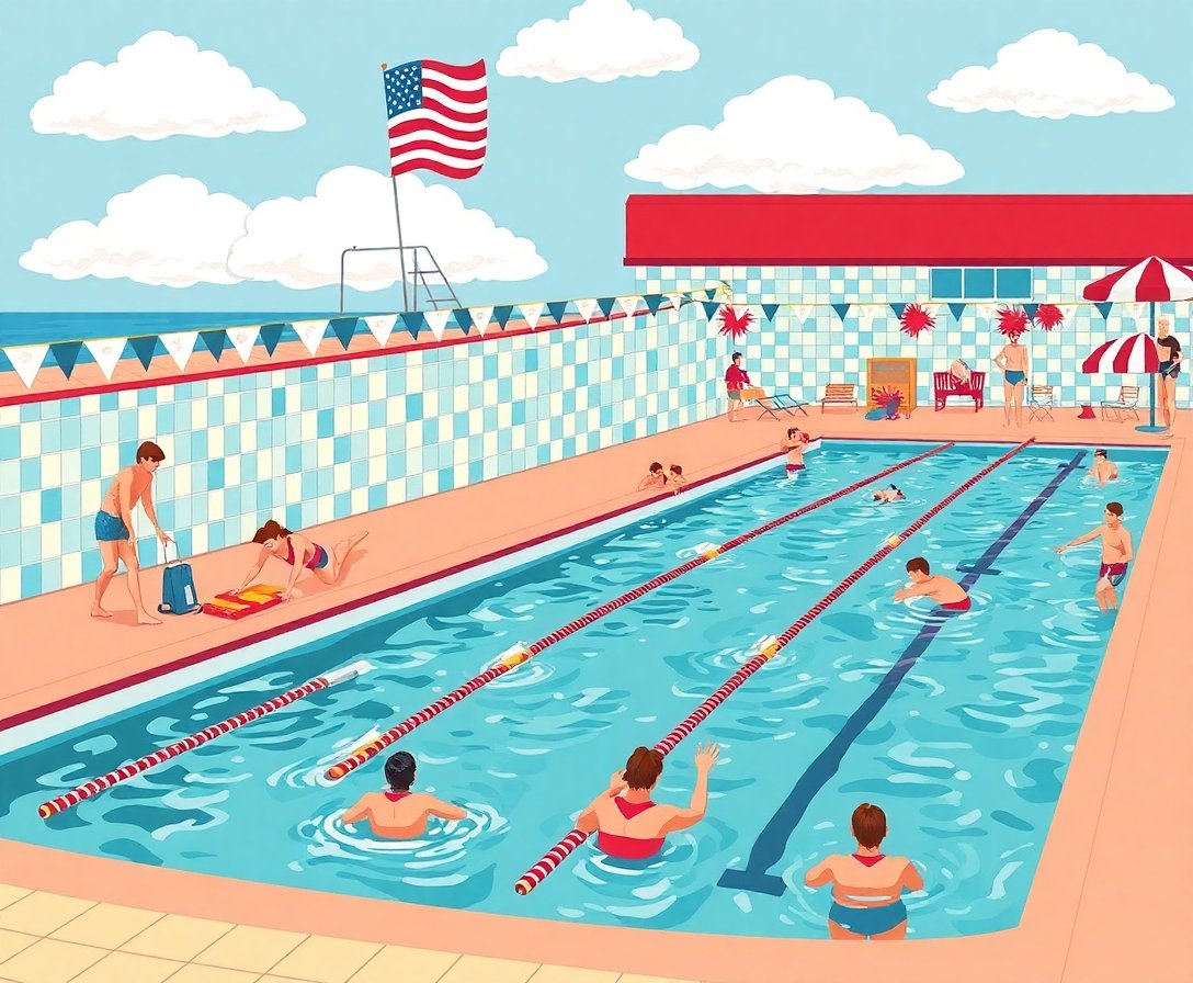 Ultimately, step back and admire your finished vintage creation. Your completed artwork showcases classic American swim club nostalgia. Display your masterpiece proudly in any living space.