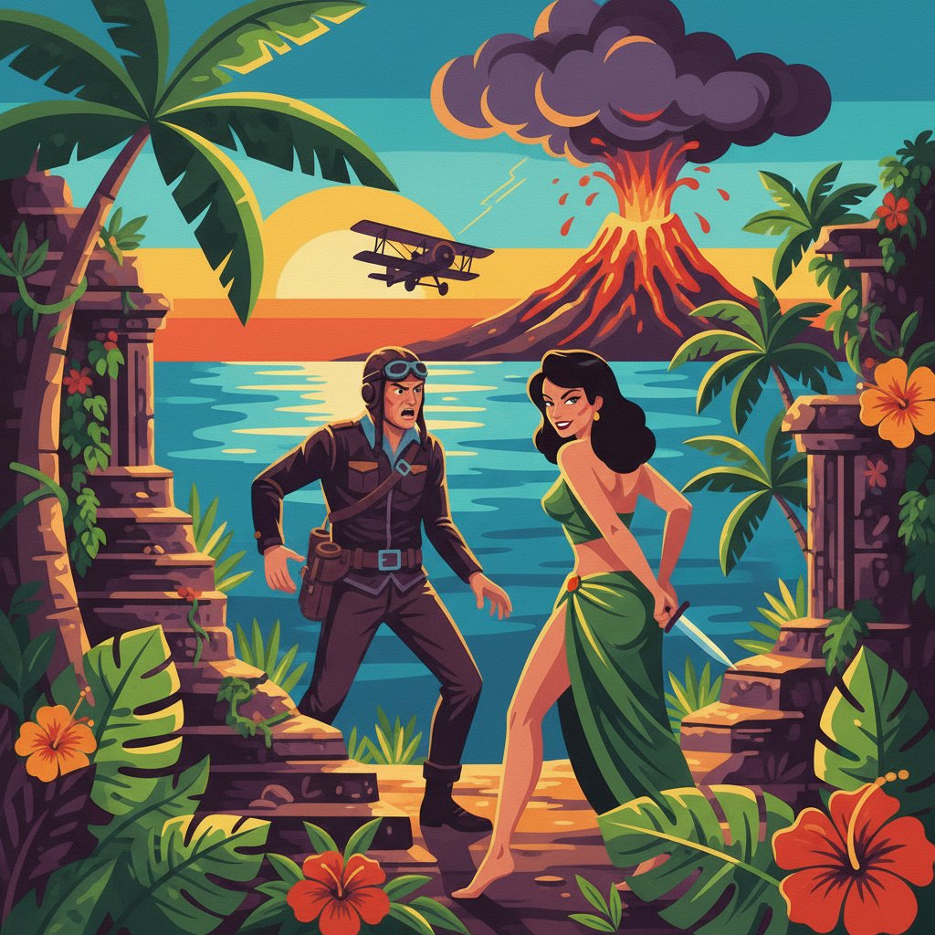 Step into a world of vintage intrigue with this captivating Retro Aviator Tropical Betrayal Paint By Numbers kit. This stunning design captures the essence of classic pulp fiction covers with mysterious aviators against a tropical backdrop. Transform your space with this noir-inspired masterpiece that combines artistic expression with nostalgic charm.