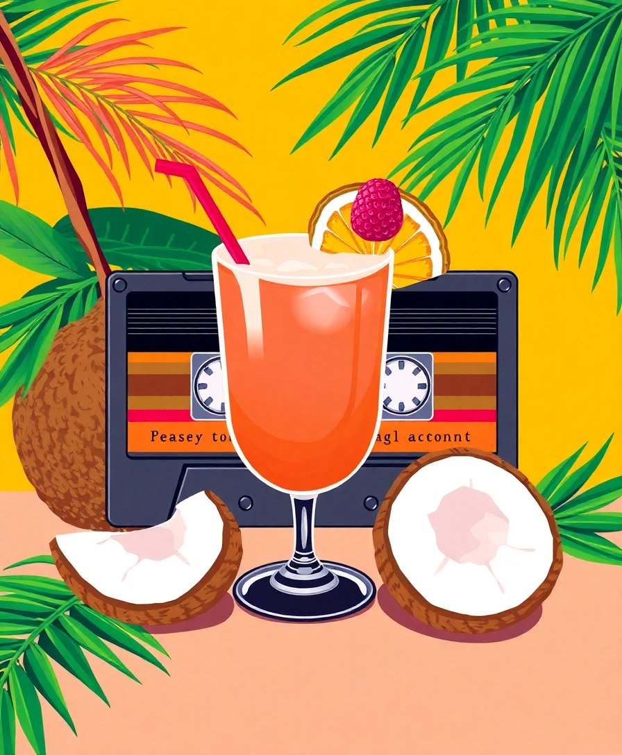 Ultimately, step back and admire your completed tropical artwork. The vibrant cassette and cocktail imagery comes alive with each brushstroke. Furthermore, this finished piece becomes a conversation starter in any room.