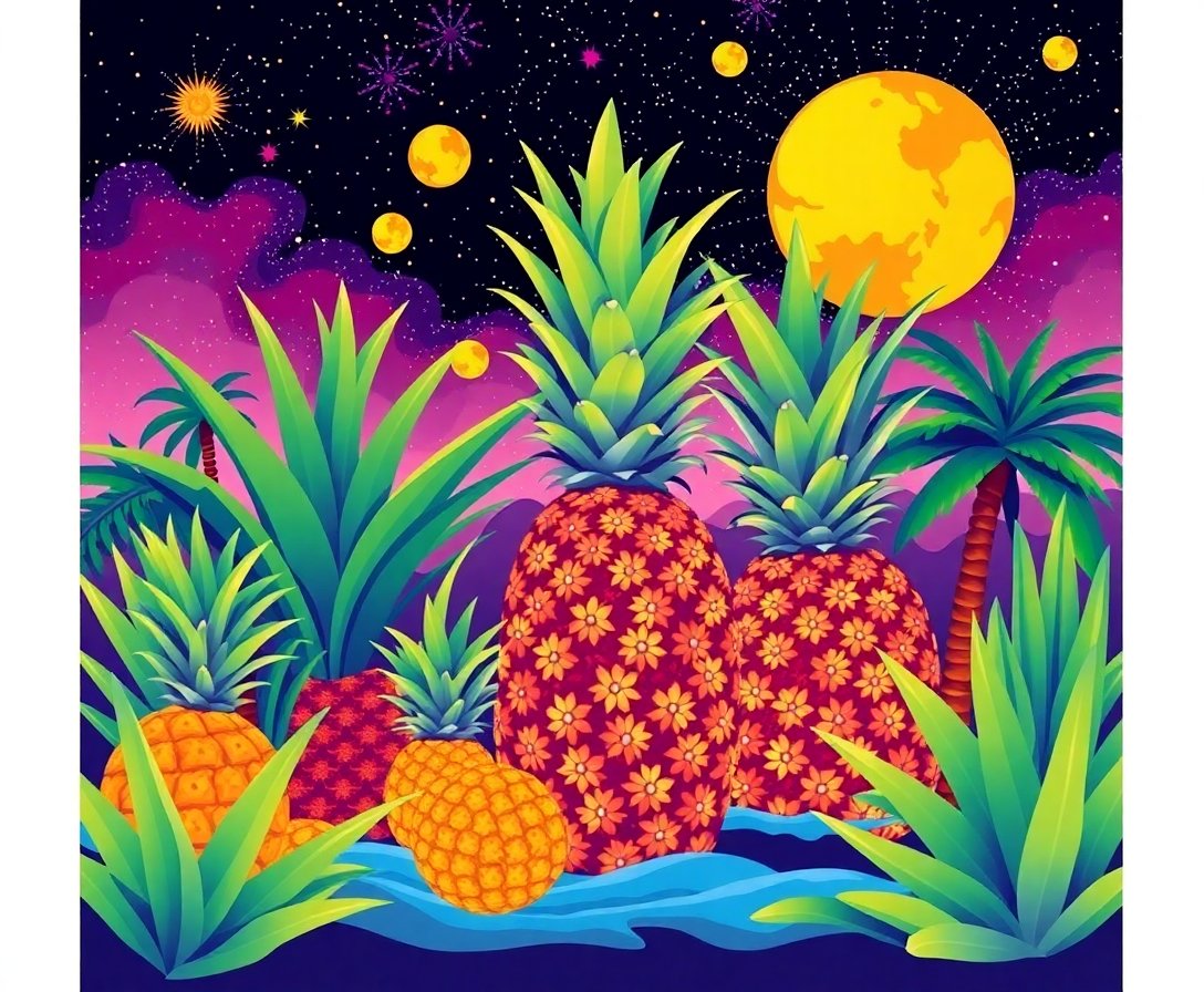 Transform your space with this extraordinary Retro Cosmic Pineapple Plantation Paint By Numbers kit. This vintage-inspired artwork combines tropical charm with cosmic wonder. Each numbered section guides you through creating a stunning retro-futuristic masterpiece that celebrates both earthly abundance and celestial mystery.