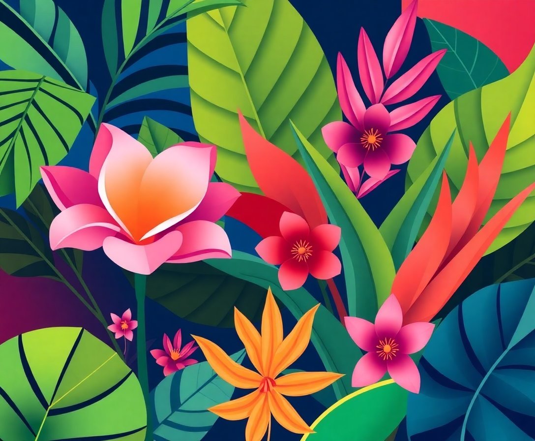 Ultimately, step back and admire your finished geometric masterpiece. The faceted tropical elements create stunning visual depth. Your art styles creation is ready for display or gifting.