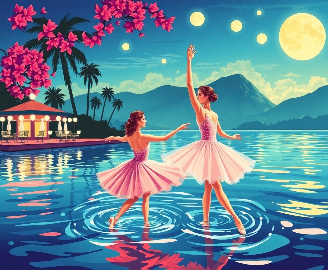 Ultimately, complete the final details and step back to admire your cinematic masterpiece. Additionally, the finished piece captures the elegance of synchronized swimming performances. Your tropical paradise scene is ready for display.
