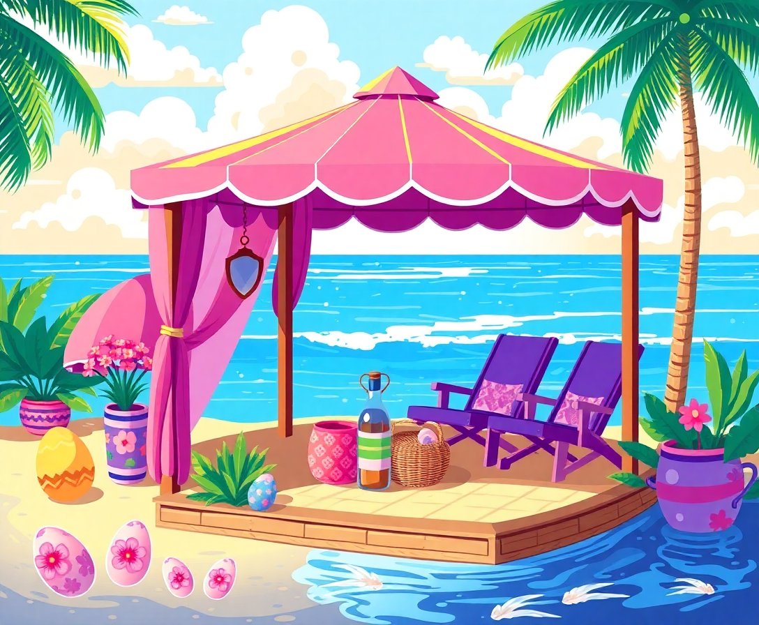 Transform your creative space with this charming Retro Island Easter Cabana Paint By Numbers kit. This vintage-inspired design captures the essence of tropical Easter celebrations. Moreover, it combines nostalgic cabana vibes with festive Easter elements.