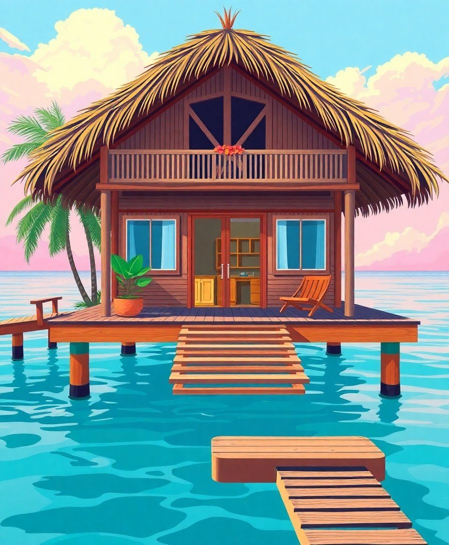 Embrace the tranquil beauty of overwater living through this captivating creative journey. Your finished artwork will serve as a lasting reminder of peaceful island moments.