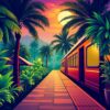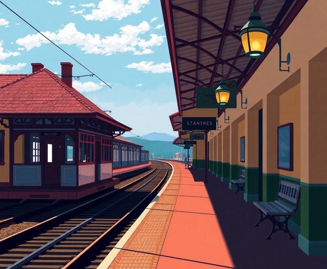 Ultimately, step back and admire your completed vintage railway station scene. Additionally, the interplay between shadows and tropical elements creates stunning visual depth. Moreover, your finished piece becomes a conversation starter.