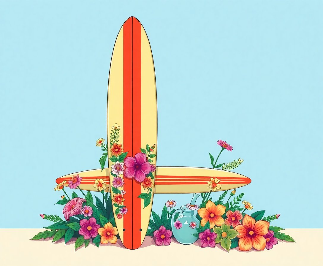 Furthermore, premium linen canvas ensures lasting durability. The vintage longboard theme appeals to surf enthusiasts universally. Additionally, Hawaiian flowers add authentic tropical authenticity to your creation.