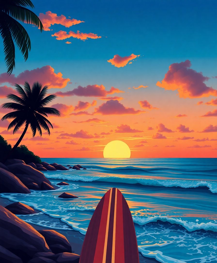 Ultimately, step back and admire your completed masterpiece. Additionally, the vibrant colors showcase the perfect blend of retro charm and oceanic beauty. Consequently, your finished artwork becomes a conversation starter.