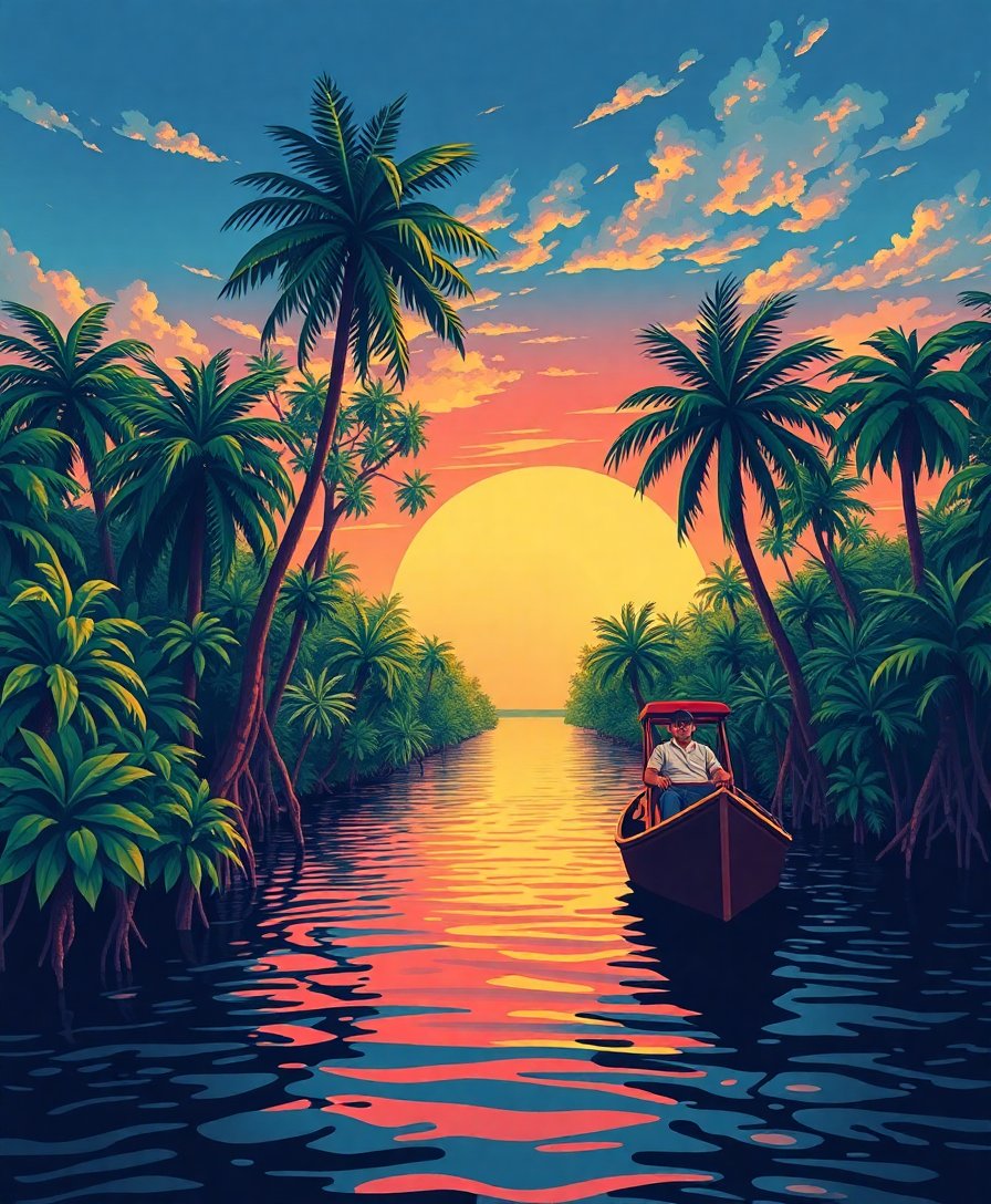 What makes this retro mangrove scene special?