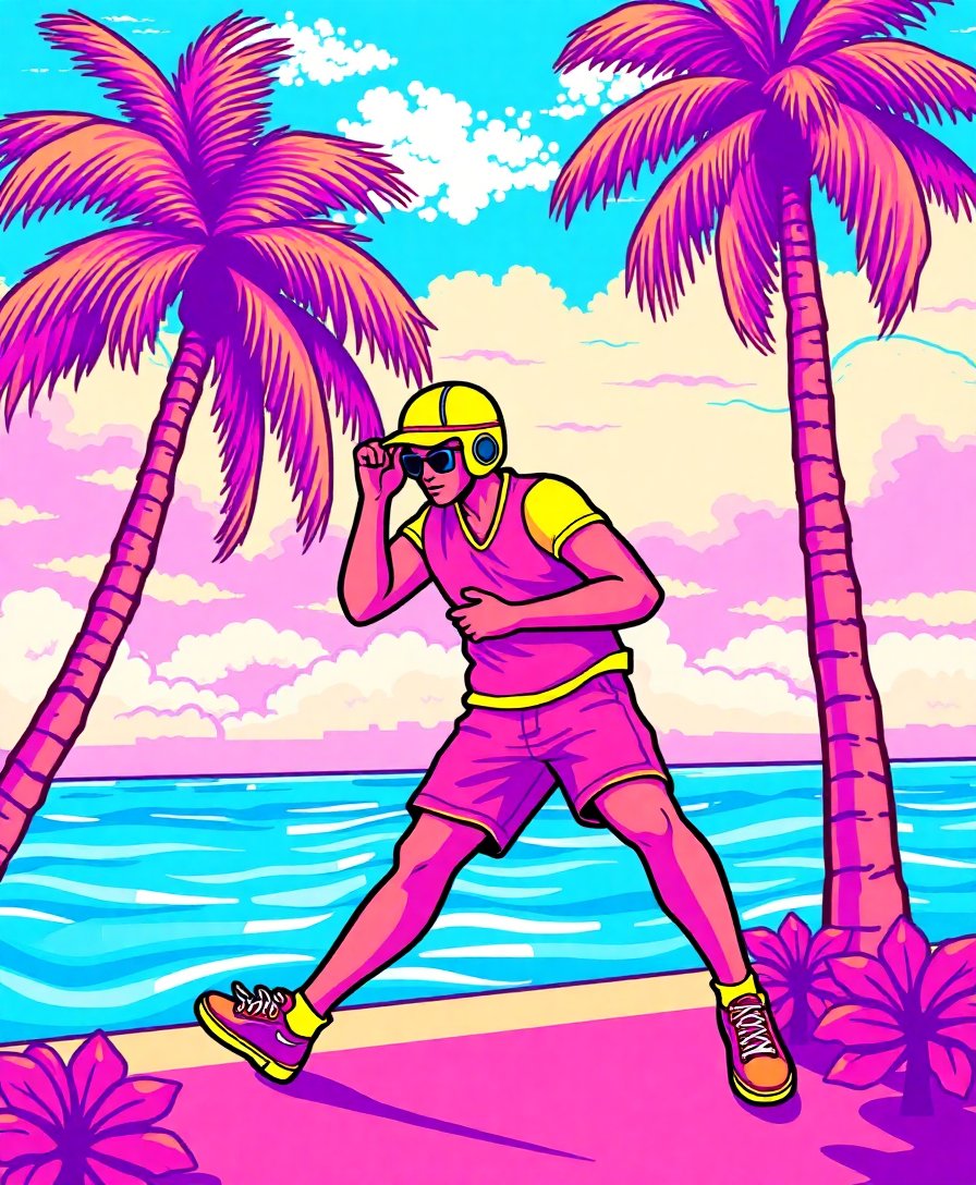 Ultimately, step back and admire your finished tropical gaming artwork. Add final touches and prepare for display. Your vintage arcade creation brings Miami vibes to any space.