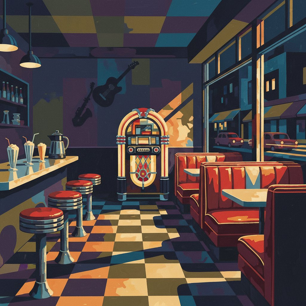 Ultimately, seal your finished painting and prepare it for display. Consequently, your 1950s-inspired artwork becomes a stunning focal point. Moreover, the glowing jukebox elements create an authentic vintage atmosphere.