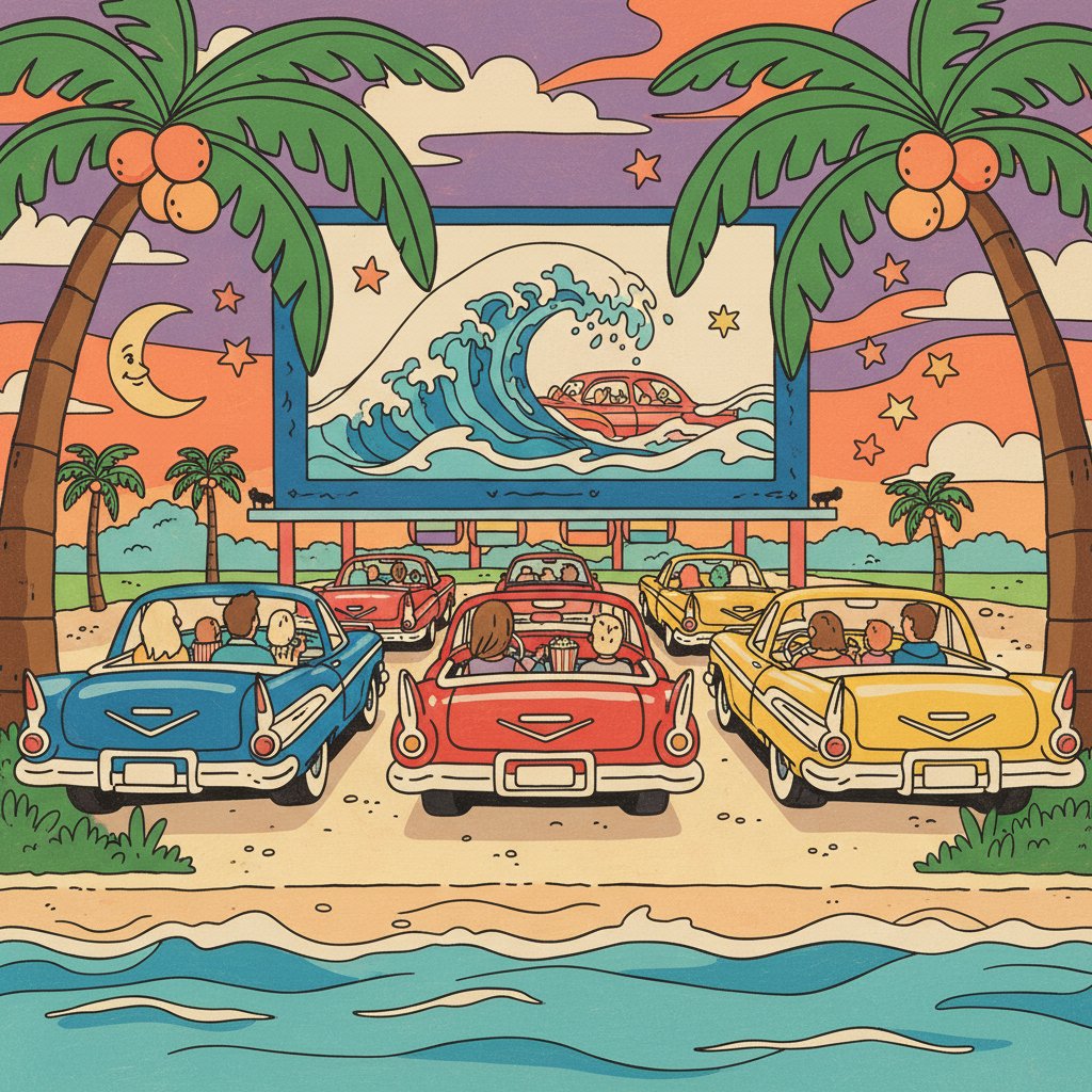 Transform your space with the nostalgic charm of the Retro Oceanic Auto Theater Paint By Numbers. This vintage-inspired kit captures the golden era of drive-in movies. Additionally, it brings tropical oceanic vibes to your artistic journey.