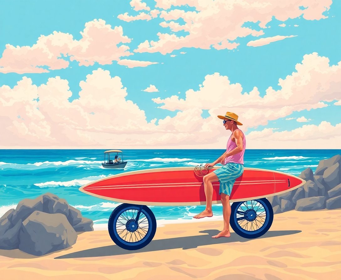 Ultimately, add final details to complete your seascape masterpiece. The longboard silhouette and sunset hues create an authentic surf culture atmosphere. Your finished artwork radiates nostalgic charm perfect for any room.