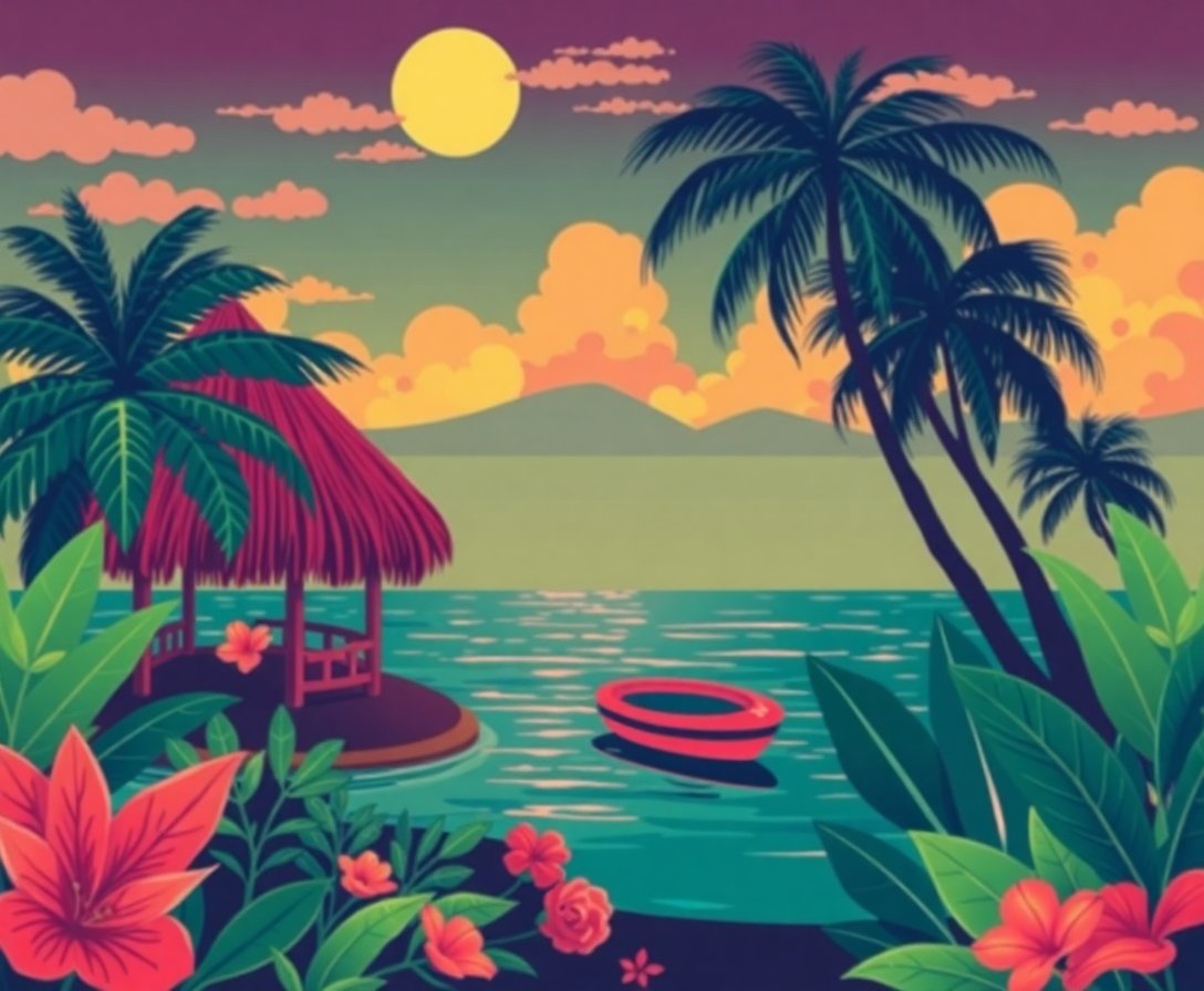 Embrace the nostalgic charm of retro entertainment art with this captivating creative project. Transform your space with this unique tropical noir masterpiece that perfectly balances vintage sophistication with modern convenience.