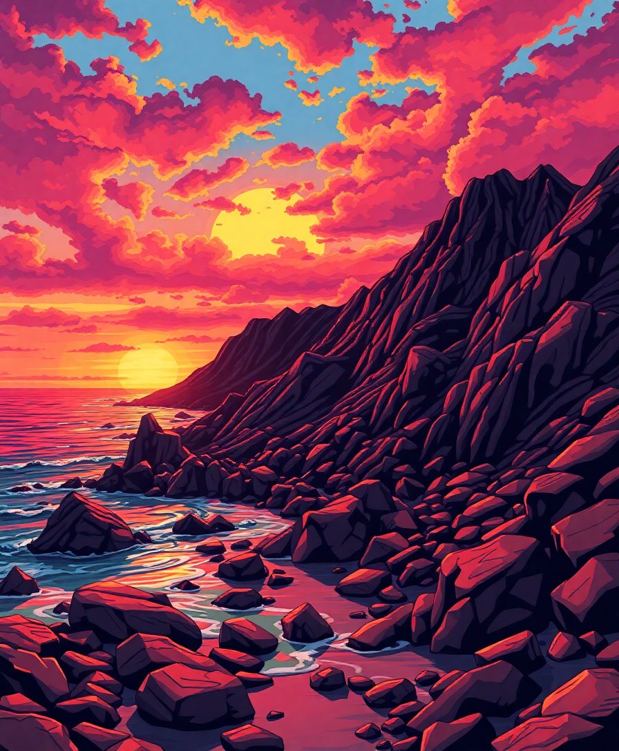Transform your space with this stunning Retro Volcanic Shoreline Paint By Numbers kit. This captivating seascape captures the dramatic beauty of basalt cliffs meeting turbulent waves. Moreover, the vintage aesthetic brings timeless elegance to any room.