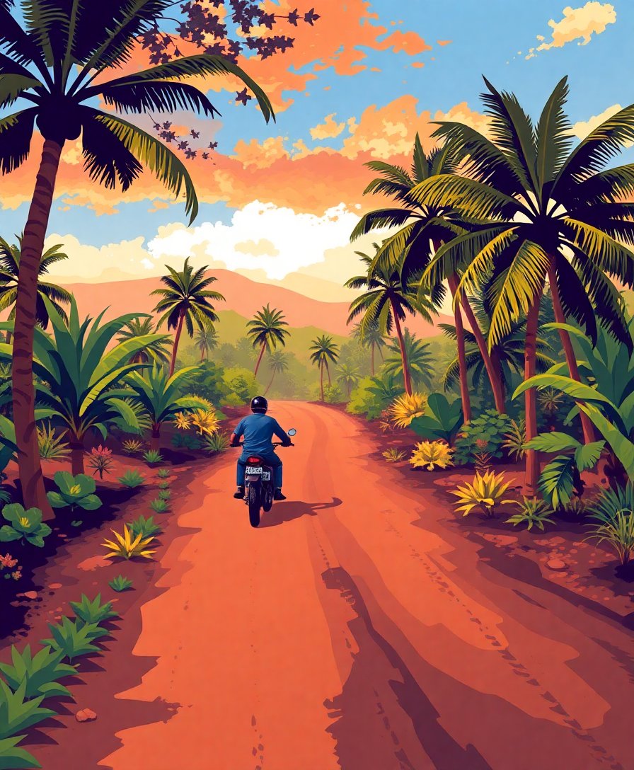 Transform your space with the captivating Riding Tropical Ash Roads Paint By Numbers experience. This stunning kit brings together dusty backroads and tropical vibes in one artistic adventure. Moreover, it offers the perfect blend of retro charm and jungle mystery.