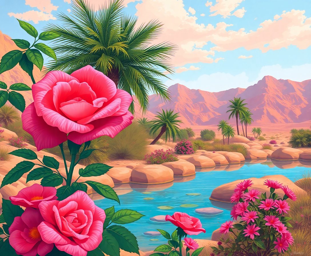 Transform your space with the enchanting Rose Beside Tropical Spring Paint By Numbers, where vibrant colors meet serene natural beauty. This stunning kit captures the essence of a peaceful oasis, featuring delicate roses blooming alongside crystal-clear spring waters.