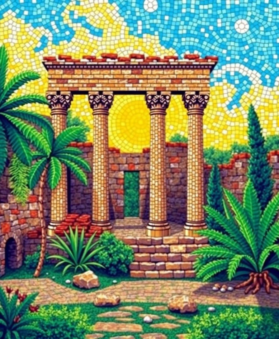 Ultimately, witness your Byzantine masterpiece come alive with rich tropical elements. The finished artwork showcases how nature reclaims ancient civilizations through stunning visual storytelling. Display your completed piece proudly as a testament to both artistic skill and historical appreciation.