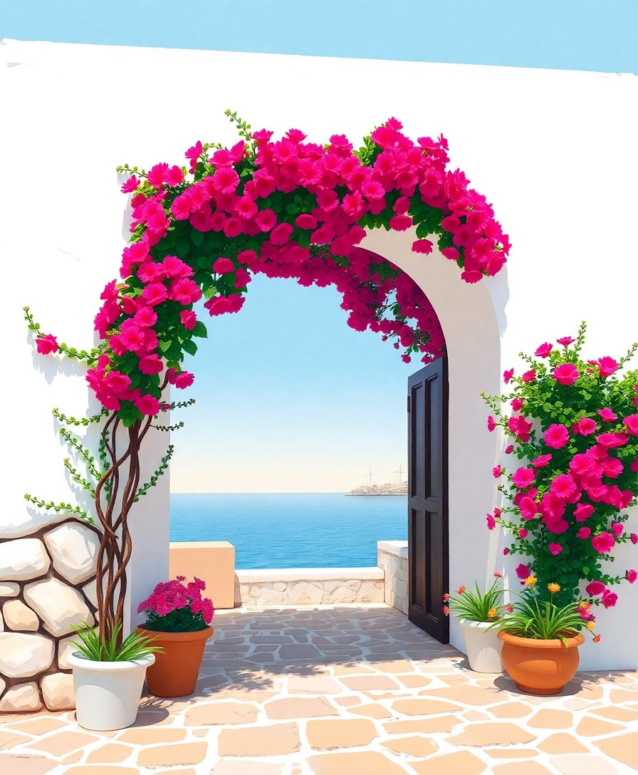 Transform your space with the enchanting beauty of Mediterranean coastlines through this captivating Rustic Aegean Flower Arch Paint By Numbers. This stunning artwork captures the timeless charm of ancient archways adorned with vibrant blooms. Moreover, you’ll discover the therapeutic joy of creating your own tropical masterpiece.