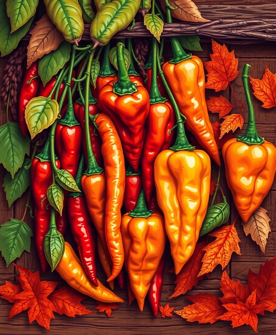 Transform your creative space with this captivating Rustic Autumn Pepper Strings Paint By Numbers kit. This artistic journey celebrates the warm beauty of autumn harvest traditions. Moreover, this detailed design captures the rustic charm of dried pepper strings hanging in seasonal splendor.