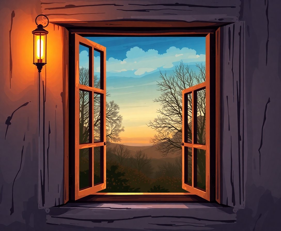 Ultimately, add final details to complete your atmospheric masterpiece. Step back and admire your warm, vintage-inspired creation. Your rustic window scene now radiates inviting light.