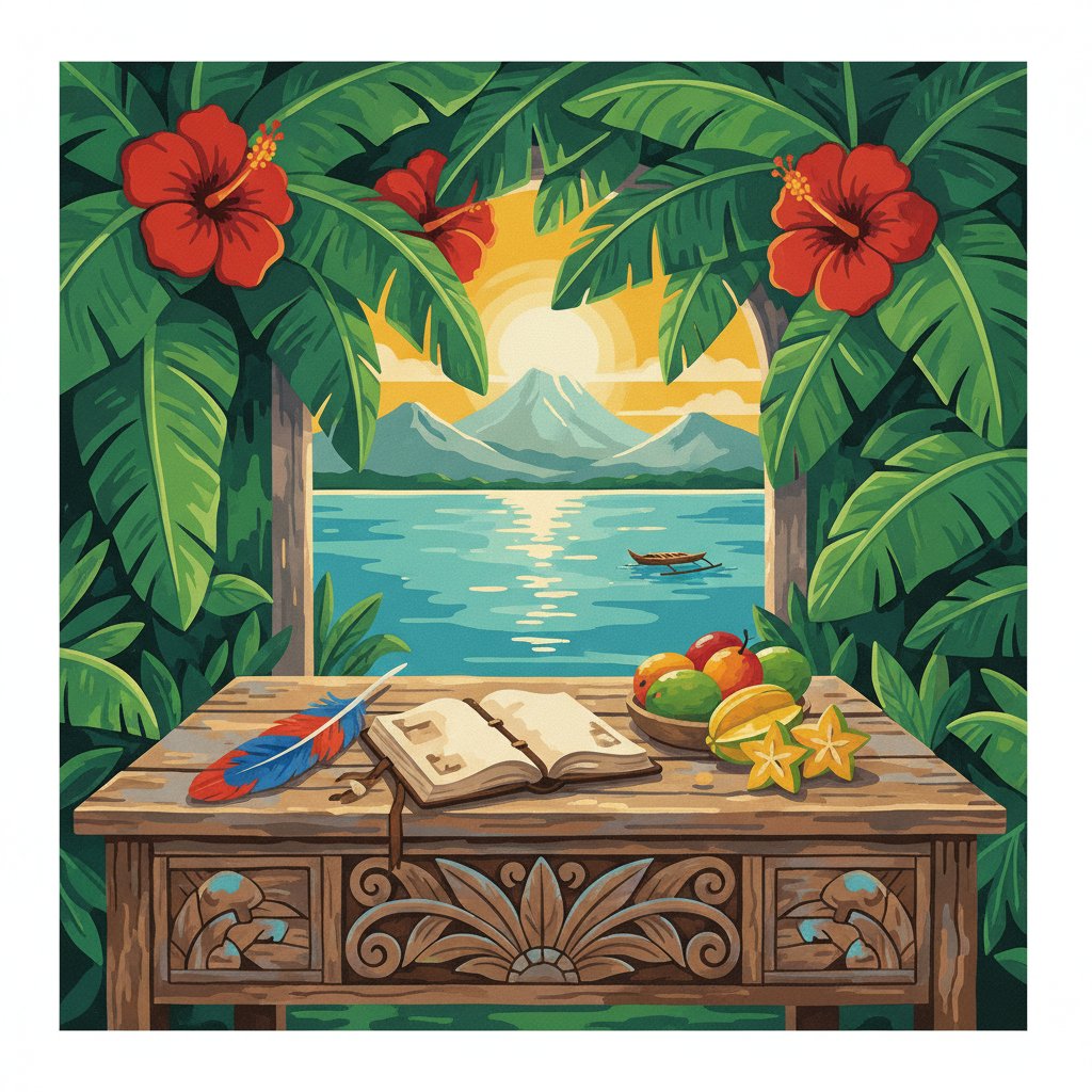 Transform your creative space with this enchanting Rustic Tropical Sonnet Desk Paint By Numbers masterpiece. This captivating design brings warmth and vintage charm to any room. Meanwhile, the intricate details of tropical elements and poetic atmosphere create a stunning focal point.