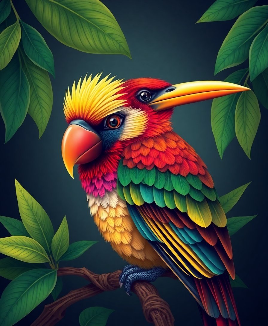 Ultimately, step back and admire your completed masterpiece. Your tropical bird portrait now displays the scholarly elegance of classic Antique Library Studies. Additionally, the rich colors and realistic details create a stunning focal point.