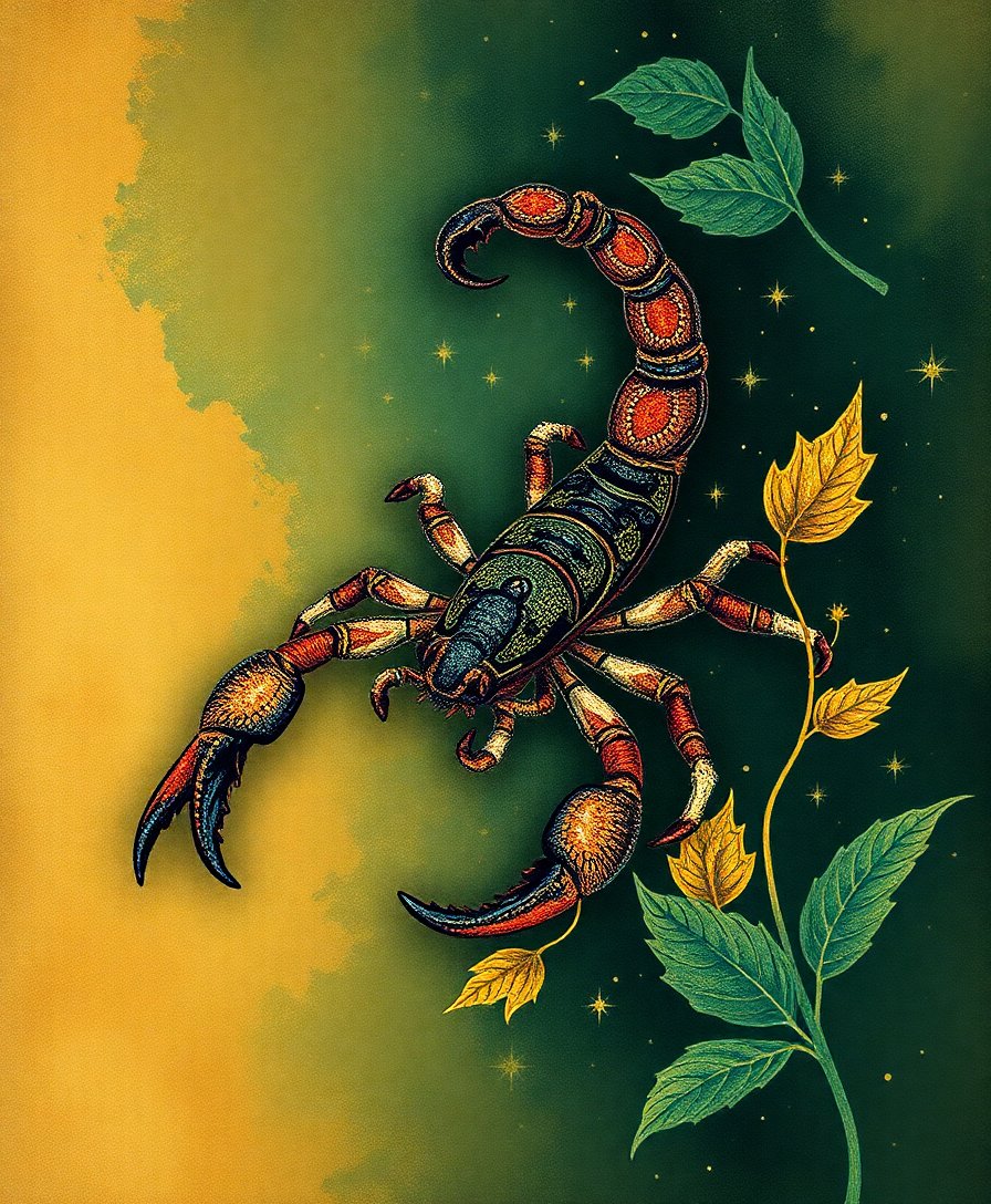 Scorpio Imprinted Antique Foliage Paint By Numbers