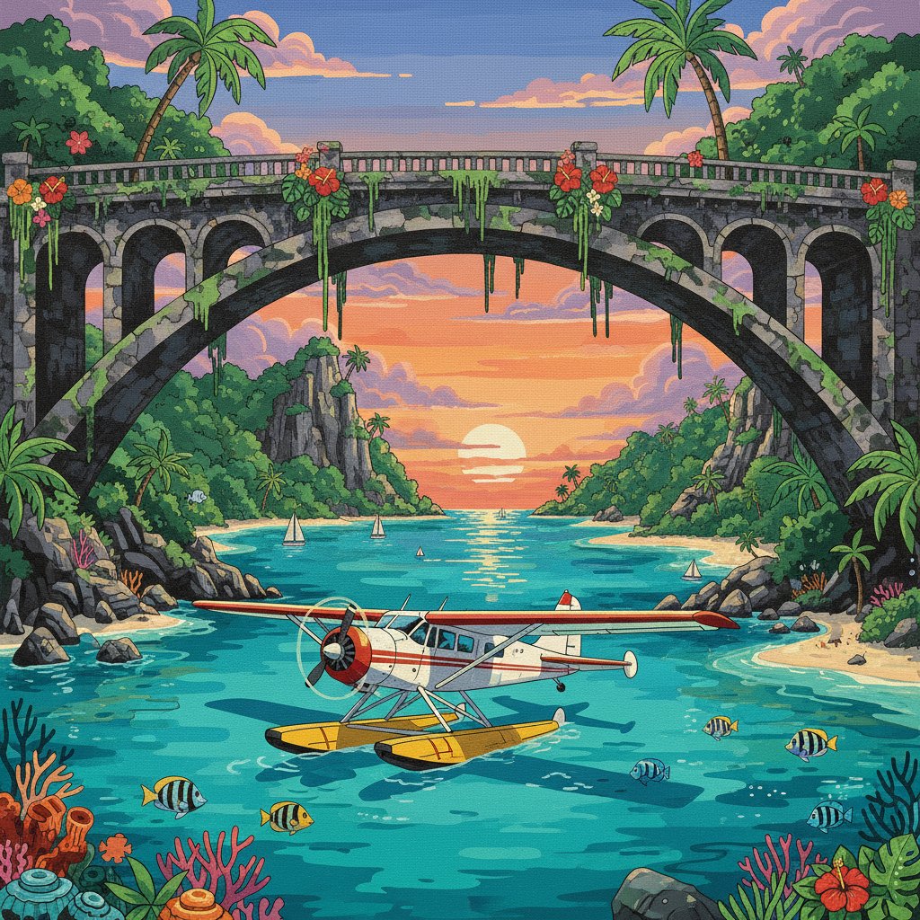 Transform your artistic journey with the stunning Seaplane Under Tropical Bridge Paint By Numbers kit. This captivating design showcases a magnificent suspension bridge stretching across emerald waters while a vintage seaplane glides beneath its majestic span. Additionally, the lush tropical scenery creates a perfect backdrop for this architectural masterpiece.