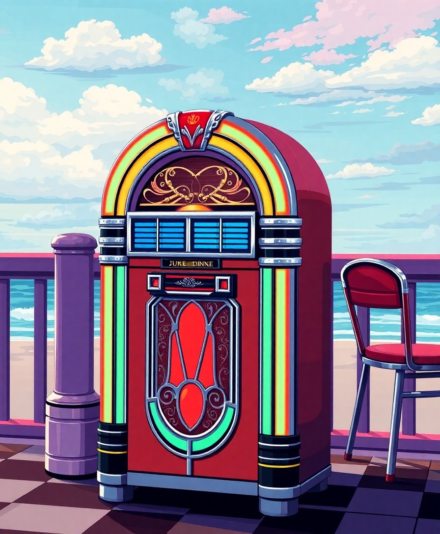 Transform your space with nostalgic charm through the Seaside Vintage Jukebox Melody Paint By Numbers. This captivating design combines the golden age of diners with coastal serenity. Additionally, this realistic artwork brings retro vibes to any room.