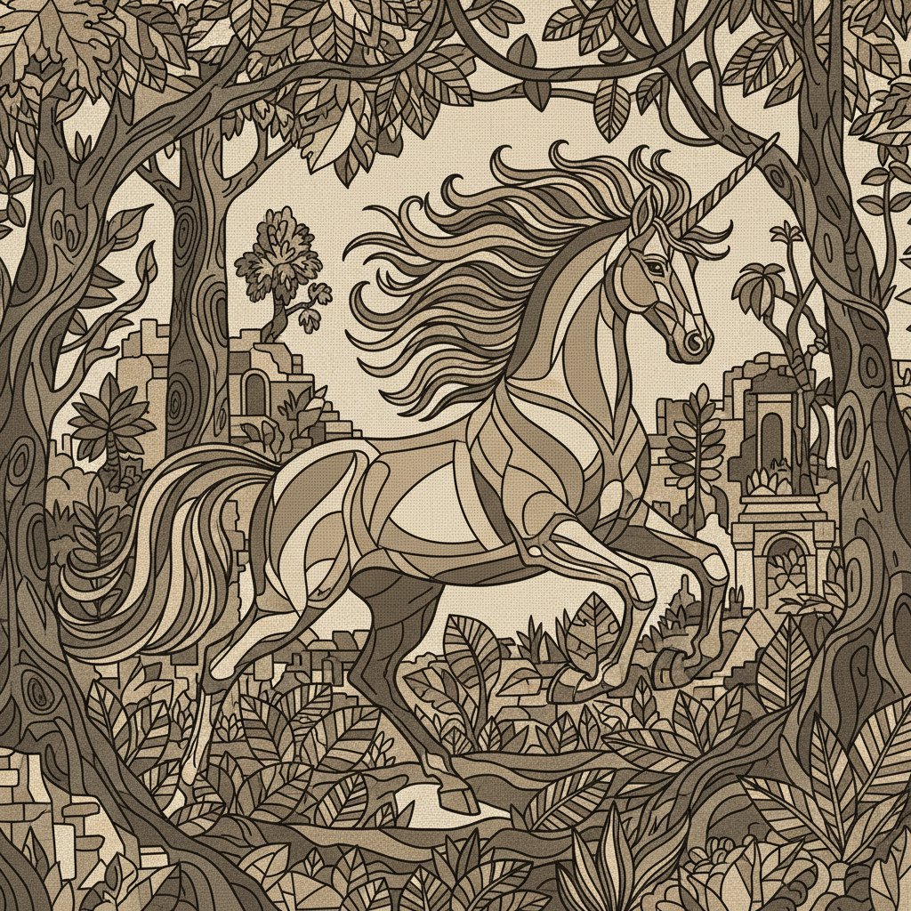 Subsequently, begin with lighter sepia shades to establish the jungle background. Then, gradually layer deeper tones to bring the mythic steed to life. Meanwhile, mythical creature details emerge through patient layering techniques.