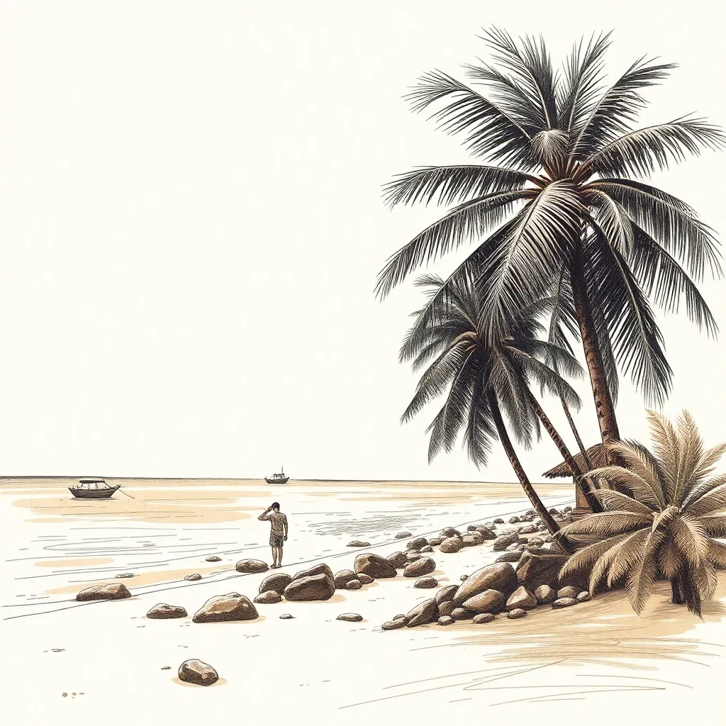 Begin your creative journey today with this stunning coastal artwork. The gentle waves and palm trees await your artistic touch in beautiful sepia tones.
