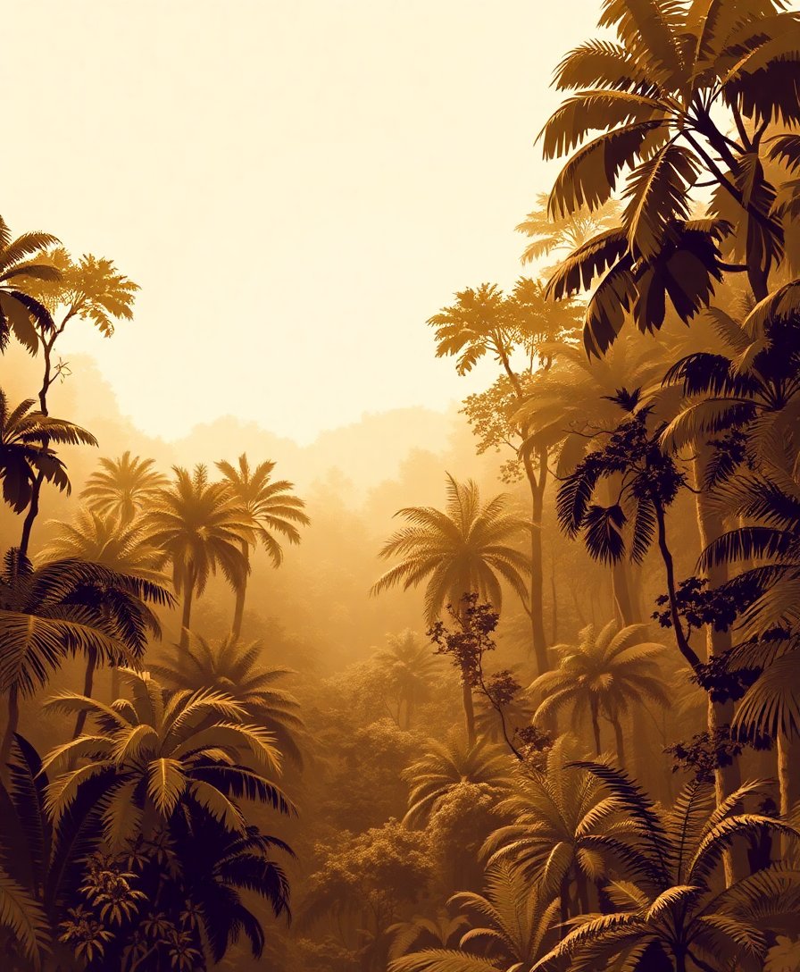 Ultimately, step back and admire your completed rainforest scene. The sepia tones create depth and atmosphere. Your finished artwork captures the tranquil beauty of morning filtering through jungle leaves perfectly.