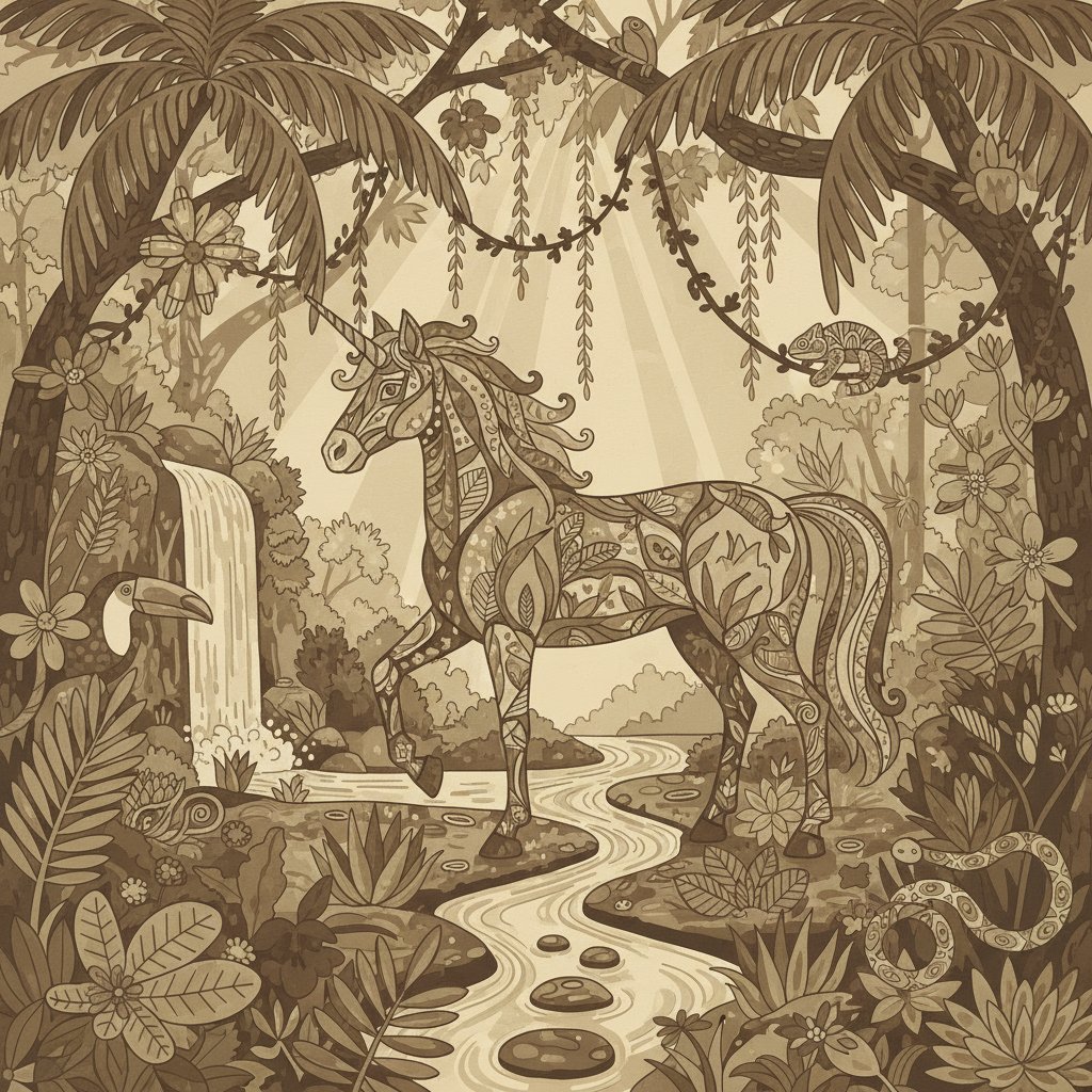 Transform your space with the enchanting beauty of our Sepia Rainforest Unicorn Art Paint By Numbers. This captivating kit brings together mystical unicorn imagery with the timeless elegance of sepia tones. Moreover, the intricate rainforest setting creates a truly magical artistic experience.