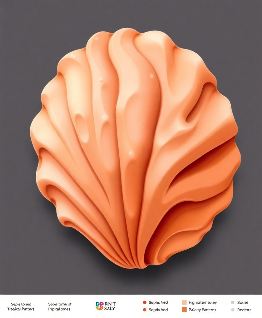 Subsequently, begin with the lightest sepia tones and work toward darker shades. Follow each numbered section methodically. The monochrome techniques create depth and dimension in your tropical shell artwork.